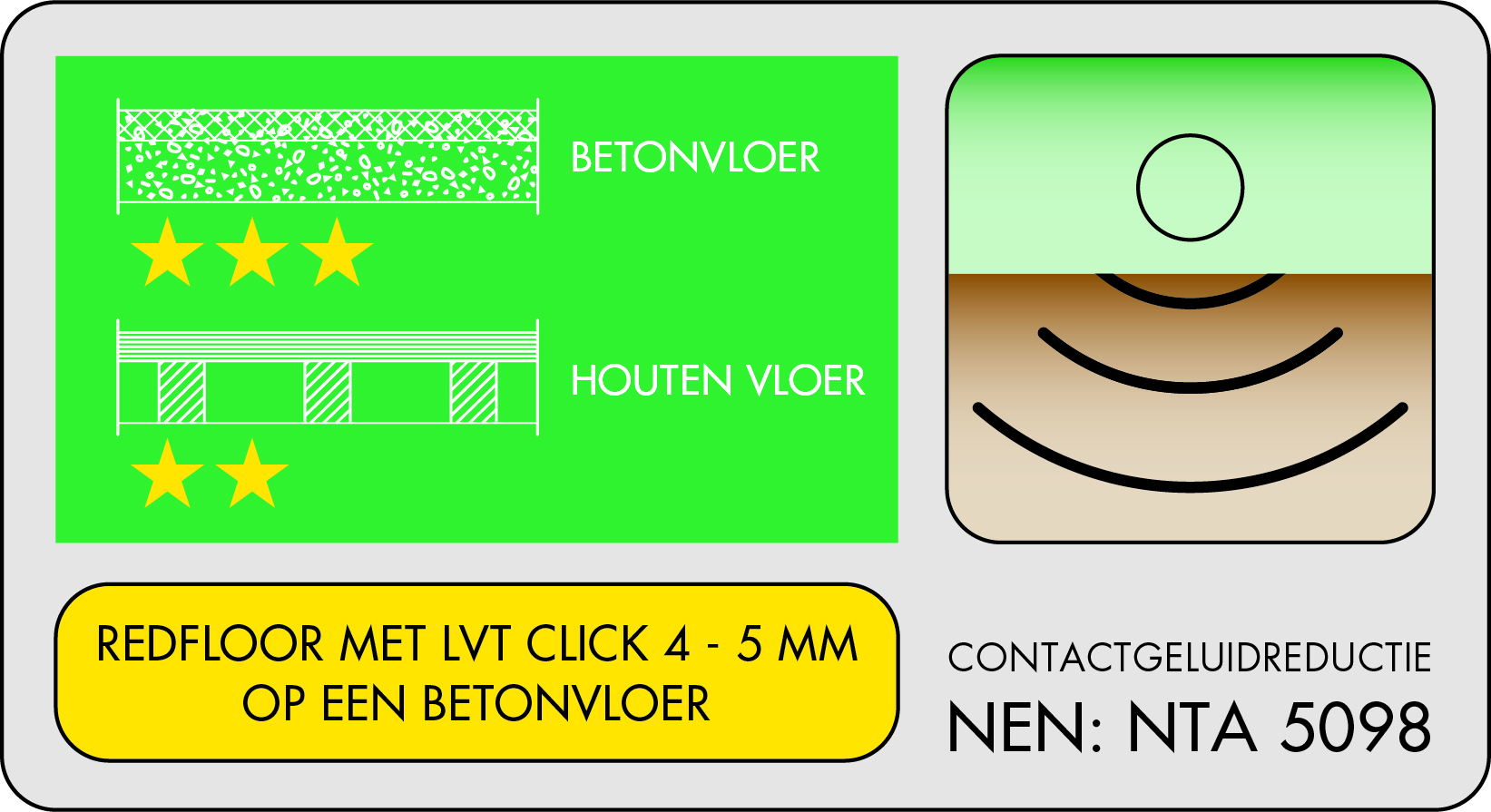 Aantal sterren Het aantal sterren op het label wordt bepaald op basis van laboratoriumonderzoek. Leveranciers van (onder)vloerproducten hebben dit label ingevoerd. Deze afspraak is gemaakt met een groot aantal fabrikanten van vloerbedekking en ondervloeren. Ook andere deskundigen, zoals de Nederlandse Stichting Geluidshinder, hebben hier aan mee gewerkt. NEN begeleide dit proces en heeft begin dit jaar NTA 5098 gepubliceerd. Een beheercommissie zorgt voor de afhandeling van vragen en klachten. Geluid door lopen van bovenburen is de meest voorkomende hinder in meergezinswoningen. Om de kans op hinder te verminderen staat in een huurcontract of splitsingsakte, of in een regelement van een Vereniging van Eigenaars, vaak een clausule hierover. NTA 5098 ‘Geluidlabeling van producten voor vloerafwerking’ bevat een tekst voor in het huurcontract of reglement, dat simpel naar een aantal sterren verwijst. Een product met vijf sterren isoleert het best, een product met één ster isoleert nauwelijks. Bij de sterren staat vermeld voor welke combinatie dat geldt. De isolatie is namelijk afhankelijk van de combinatie van de topvloer en het type ondervloer. Bronnen: |
